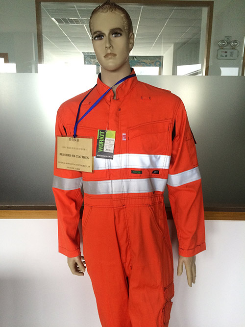 我公司生產的腈氯綸四合一混紡抗電弧服,主要成分為:腈氯綸,棉,對位芳綸,導電纖維。具有抗電弧,阻燃,隔熱等特點,根據客戶不同的需求,通過調整設計織物成分規格,達到不同的ATPV值,并通過西班牙AITEX研究所檢測,已出口澳洲,歐洲等國家和地區。